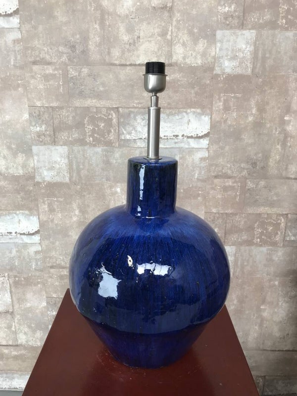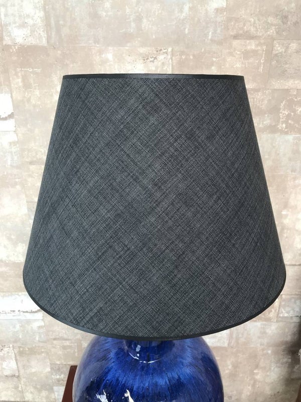 T031204 Tafellamp aardewerk blauw glazuur met antraciet linnen kap.