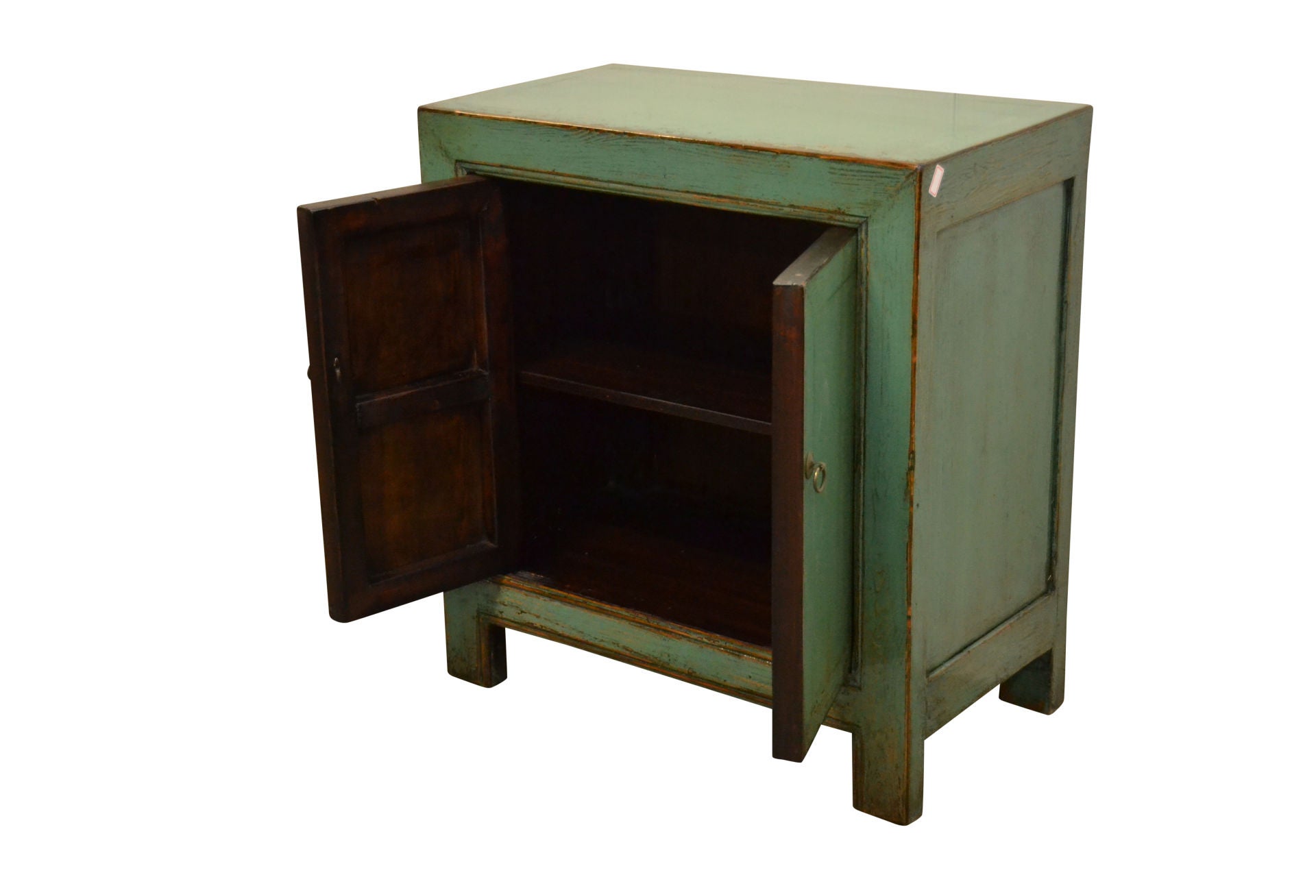1x origineel oude handgemaakt elmwood Chinese 2 deurs kastje (1900-1920) 20e eeuw, uit de regio van Gansu-China. Dit oude kastje is geheel met de hand gemaakt en op authentieke wijze gerestaureerd door vakmensen uit China. Dit meubel onderscheid zich door de mooie afwerking en vooral de speciale natuur-lak laag. Deze zijde glans laklaag wordt gedurende het restauratie proces opgebouwd in wel 4 tot 6 lagen. Dit zorgt voor de exclusieve uitstraling, welke het karaktereigenschap en ziel van het meubelstuk meer laat spreken. Natuurlijk dient de lak laag ook als een extra bescherming.