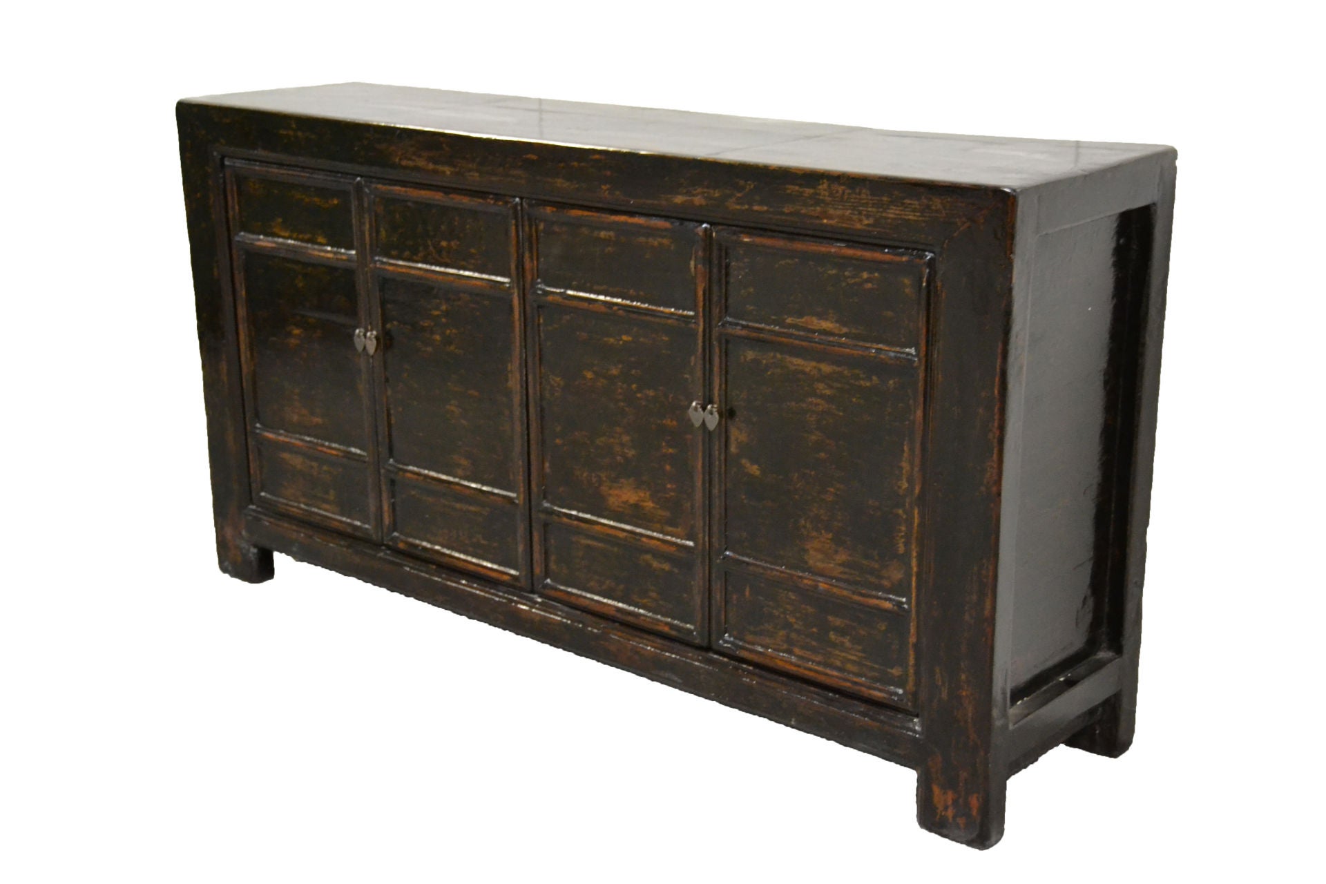 1x origineel oude handgemaakt tie-li-mu wood 4 deurs Chinees dressoir (1900-1920) 20e eeuw, uit de regio van Yunnan-China. Dit oude dressoir is geheel met de hand gemaakt en op authentieke wijze gerestaureerd door vakmensen uit China. Dit meubel onderscheid zich door de mooie afwerking en vooral de speciale natuur-lak laag. Deze hoog glans laklaag wordt gedurende het restauratie proces opgebouwd in wel 6 tot 8 lagen. Dit zorgt voor de exclusieve uitstraling, welke het karaktereigenschap en ziel van het meubelstuk meer laat spreken. Natuurlijk dient de lak laag ook als een extra bescherming.