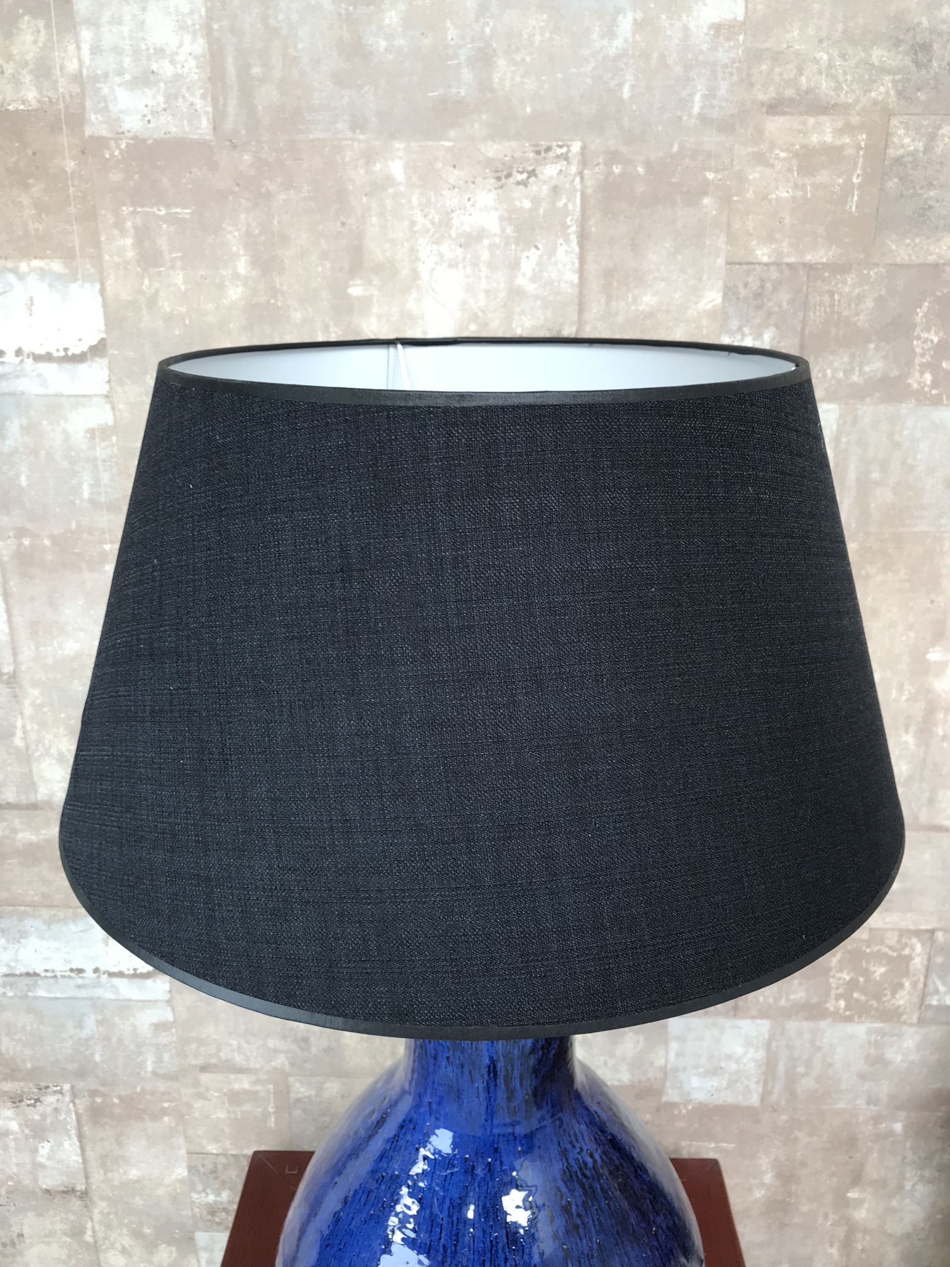 T021211 Tafellamp aardewerk blauw glazuur met zwarte linnen kap.
