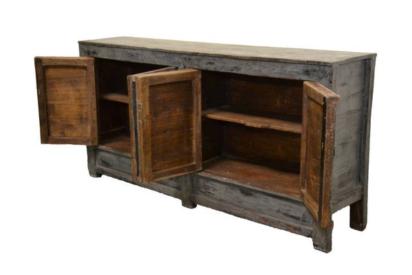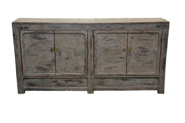 1x origineel oude handgemaakt elmwood 4 deurs Chinees dressoir (1900-1920) 20e eeuw, uit de regio van Gansu-China. Dit oude dressoir is geheel met de hand gemaakt en op authentieke wijze gerestaureerd door vakmensen uit China. Dit meubel onderscheid zich door de mooie afwerking en vooral de speciale natuur-lak laag. Deze zijde glans laklaag wordt gedurende het restauratie proces opgebouwd in wel 4 tot 6 lagen. Dit zorgt voor de exclusieve uitstraling, welke het karaktereigenschap en ziel van het meubelstuk meer laat spreken. Natuurlijk dient de lak laag ook als een extra bescherming.