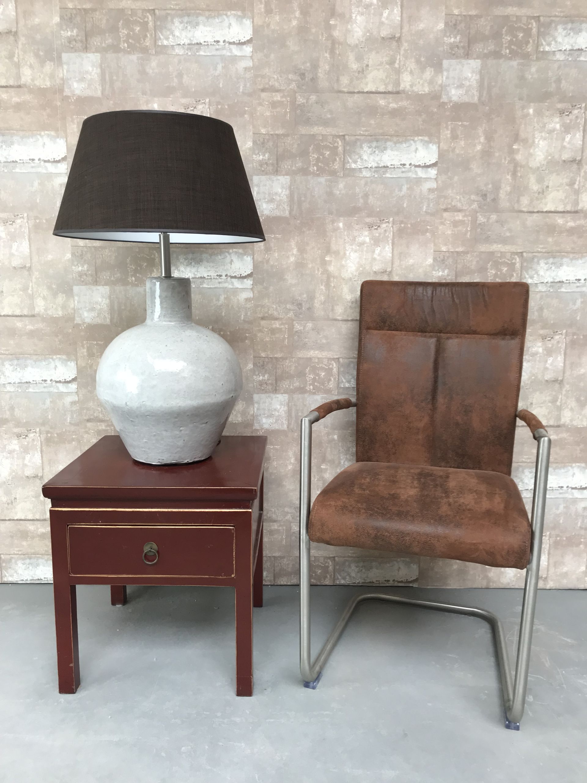 De lampen zijn van eigen ontwerpen, wij laten onze lampen in Azië produceren in een kleine oude pottenbakkerij, we kunnen dit doen vanwege de kleinschaligheid waar wij in opereren, de linnen lampenkap wordt in Nederland vervaardigd.