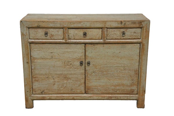(28) 1x origineel oude handgemaakt elmwood 2 deuren en 3 laden Chinees dressoir (1900-1920) 20e eeuw, uit de regio van Gansu-China. Dit oude dressoir is geheel met de hand gemaakt en op authentieke wijze gerestaureerd door vakmensen uit China. Dit meubel onderscheid zich door de mooie afwerking en vooral de speciale natuur-lak laag. Deze mat laklaag wordt gedurende het restauratie proces opgebouwd in wel 4 tot 6 lagen. Dit zorgt voor de exclusieve uitstraling, welke het karaktereigenschap en ziel van het meubelstuk meer laat spreken. Natuurlijk dient de lak laag ook als een extra bescherming.
