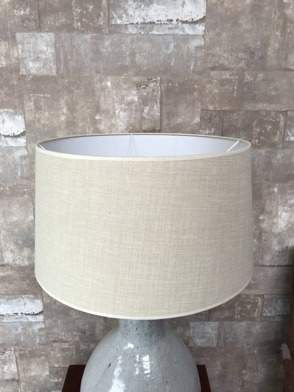 T020716 Tafellamp aardewerk grijs glazuur met creme linnen kap.
