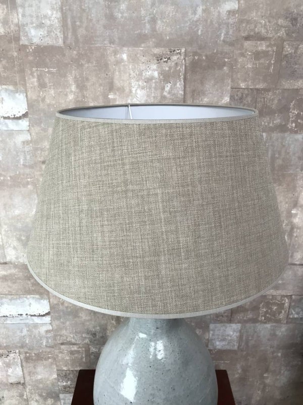 T010712 Tafellamp aardewerk grijs glazuur met licht bruine linnen kap.