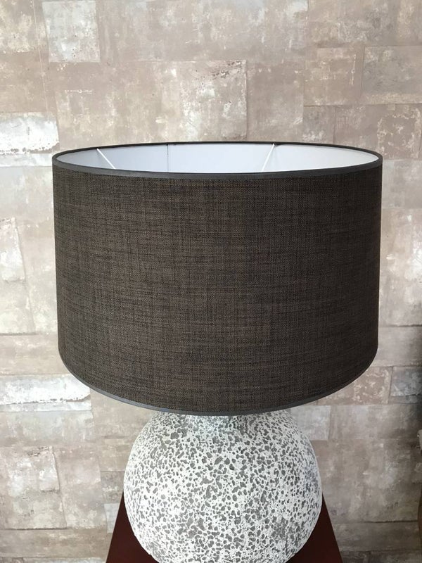 T037919 Tafellamp aardewerk ocean oxide met donker bruine linnen kap.