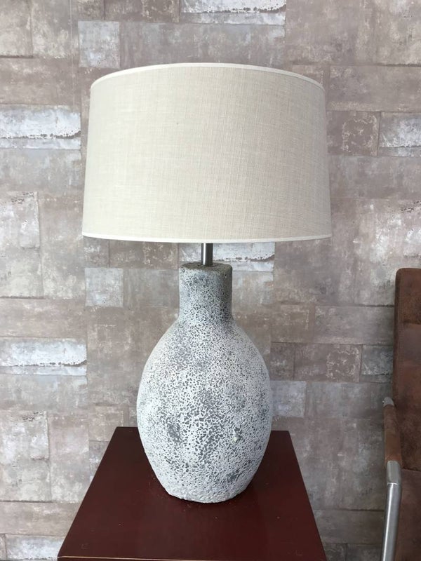 T017916 Tafellamp aardewerk ocean oxide met creme linnen kap.