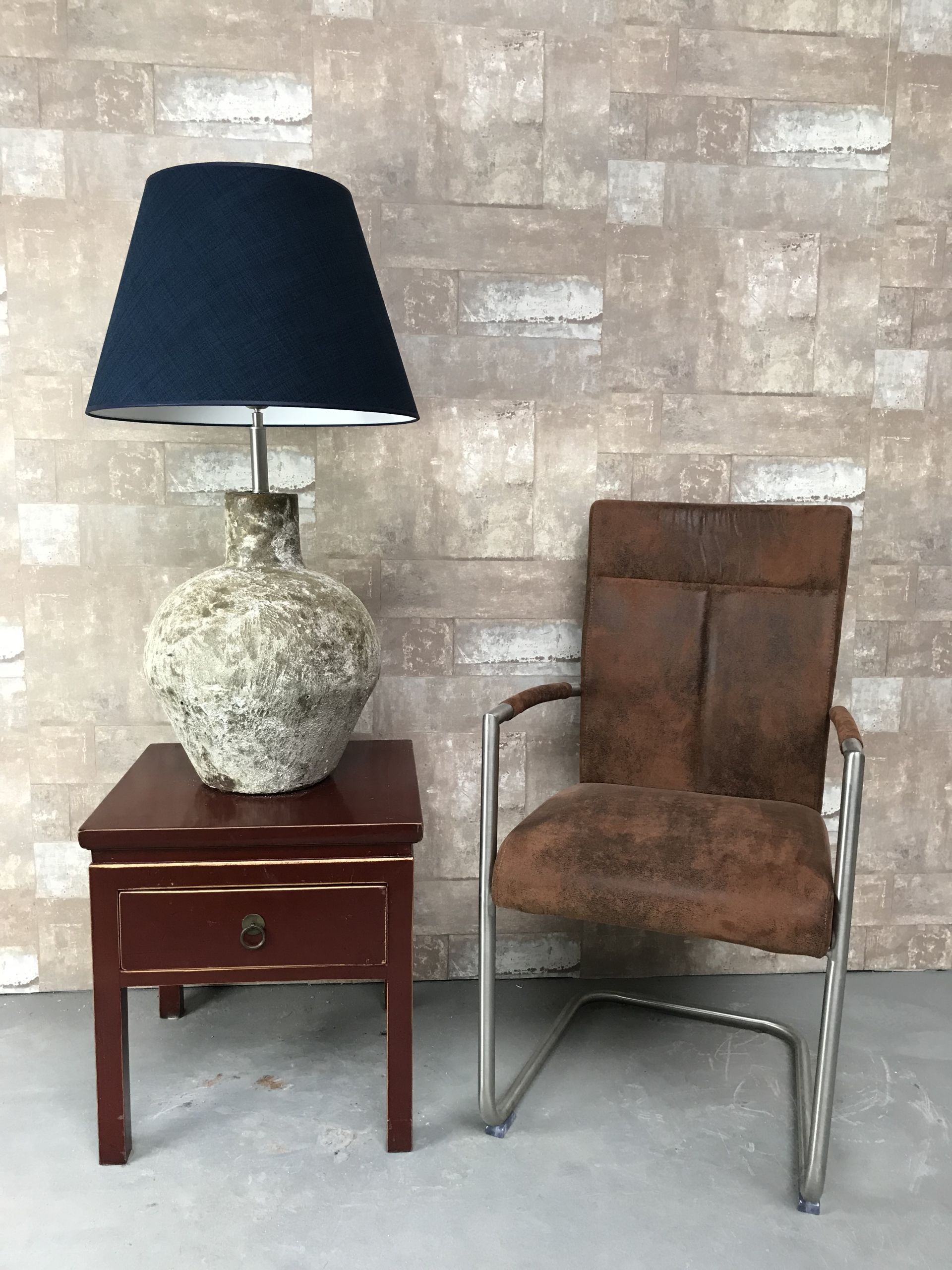 T037102 Tafellamp aardewerk atlantic met donker blauwe linnen kap.