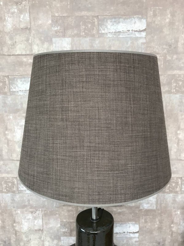 V031435 Vloerlamp aardewerk donker groen glazuur met bruine linnen kap.