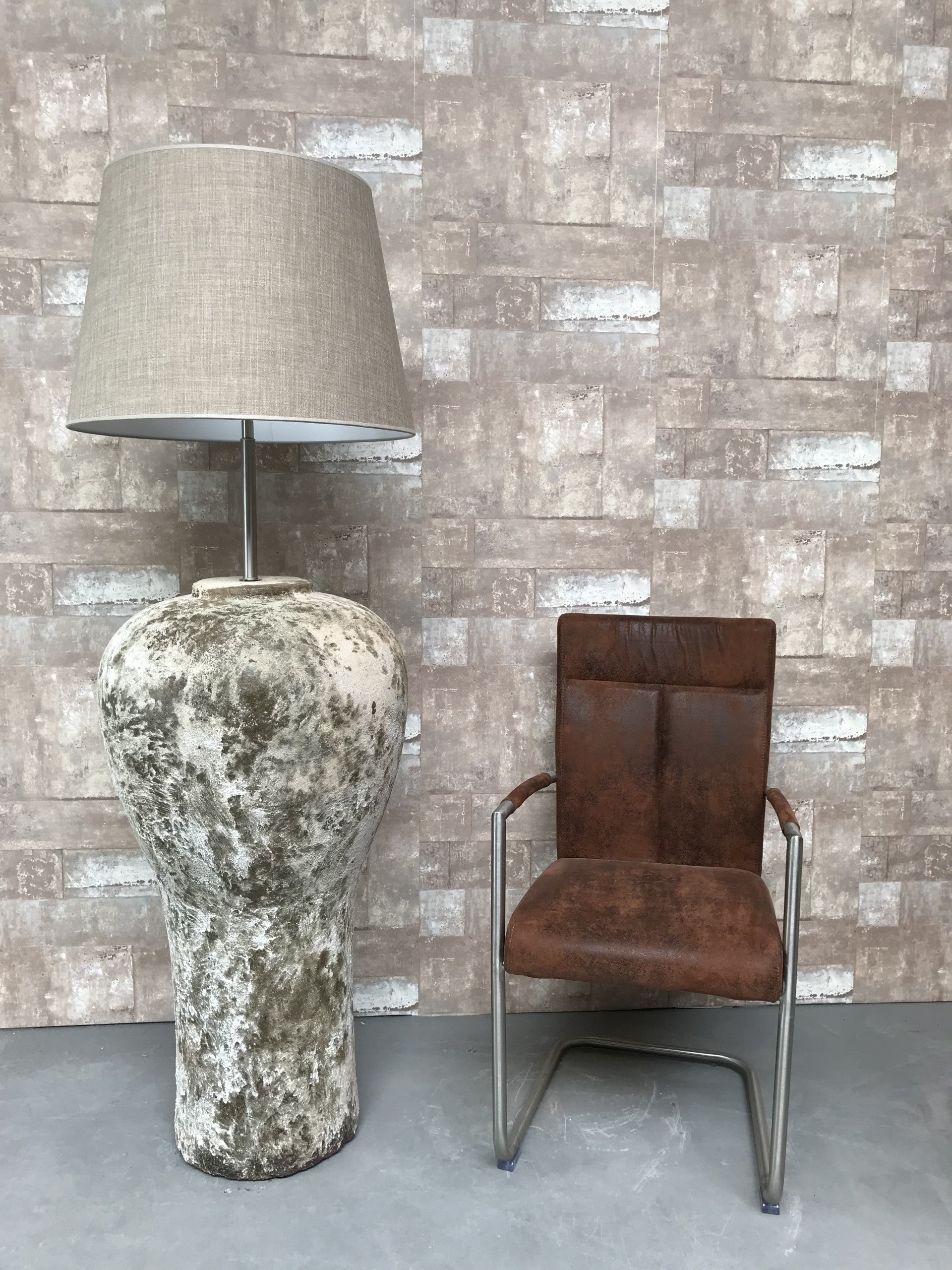 Devaso landelijke aardewerk vloerlamp deze is op primitieve en ambachtelijke wijze, door vakmensen hand vervaardigd aardewerk.