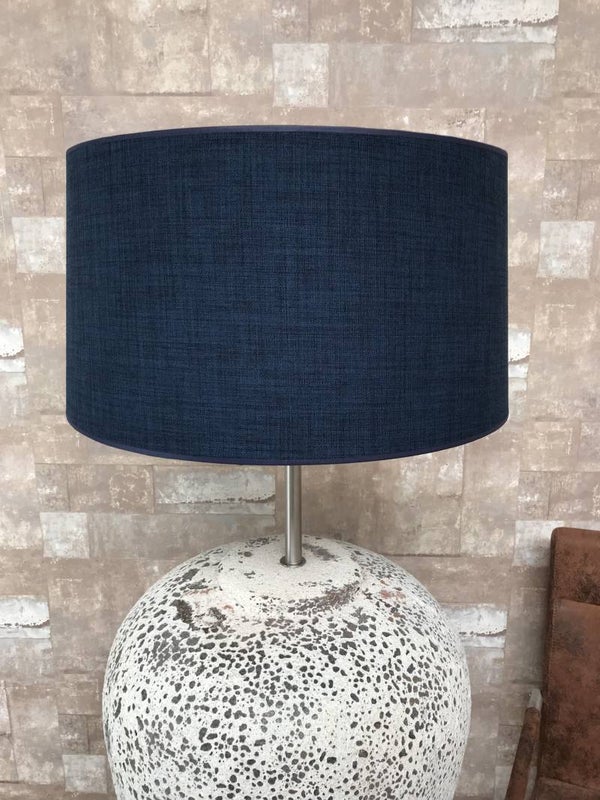V047937 Vloerlamp aardewerk ocean oxide met donker blauwe linnen kap.