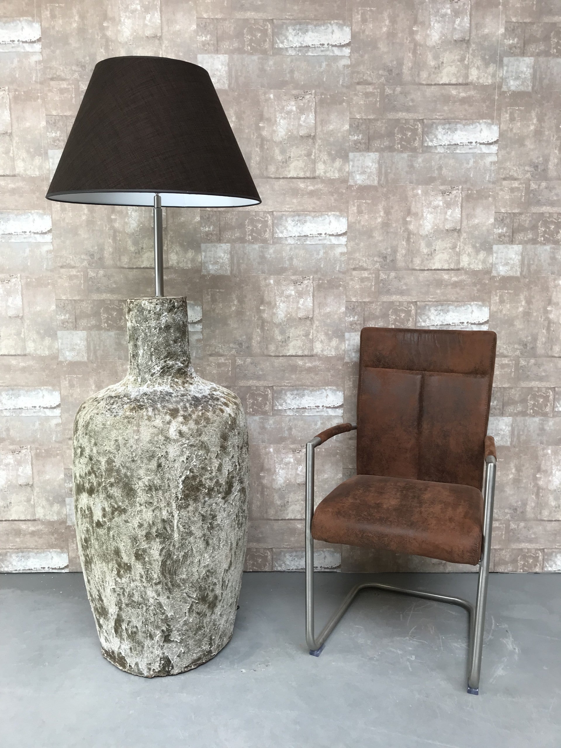 Devaso landelijke aardewerk vloerlamp deze is op primitieve en ambachtelijke wijze, door vakmensen hand vervaardigd aardewerk.