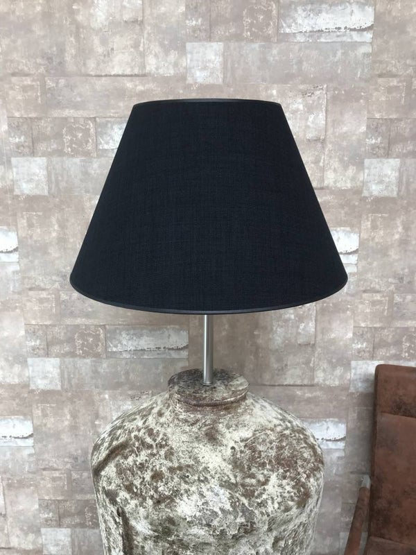 V057925 Vloerlamp aardewerk osian oxide met zwarte linnen kap.