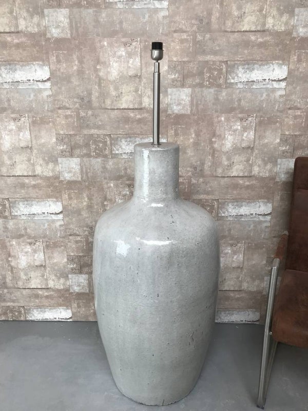 V030726 Vloerlamp aardewerk grijs glazuur met creme linnen kap.