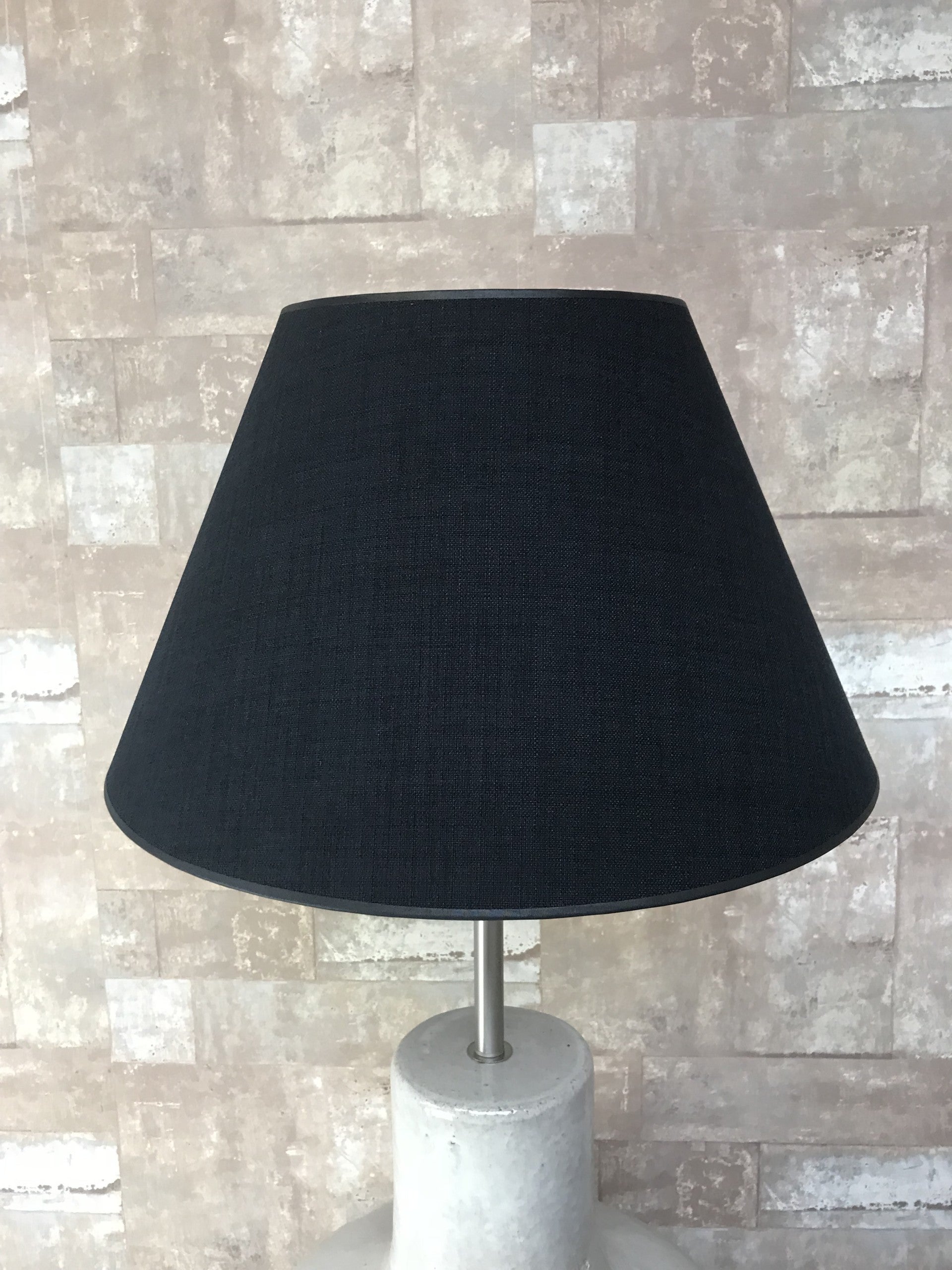V030725 Vloerlamp aardewerk grijs glazuur met zwarte linnen kap.