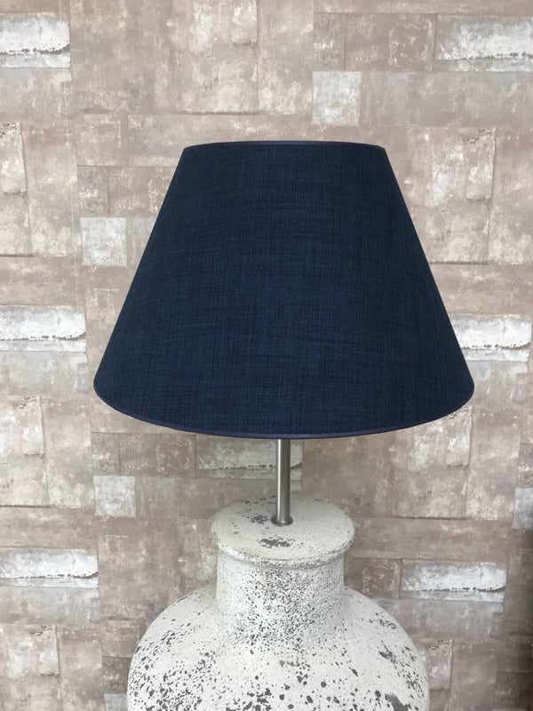 V017923 Vloerlamp aardewerk osian oxide met donker blauwe linnen kap.