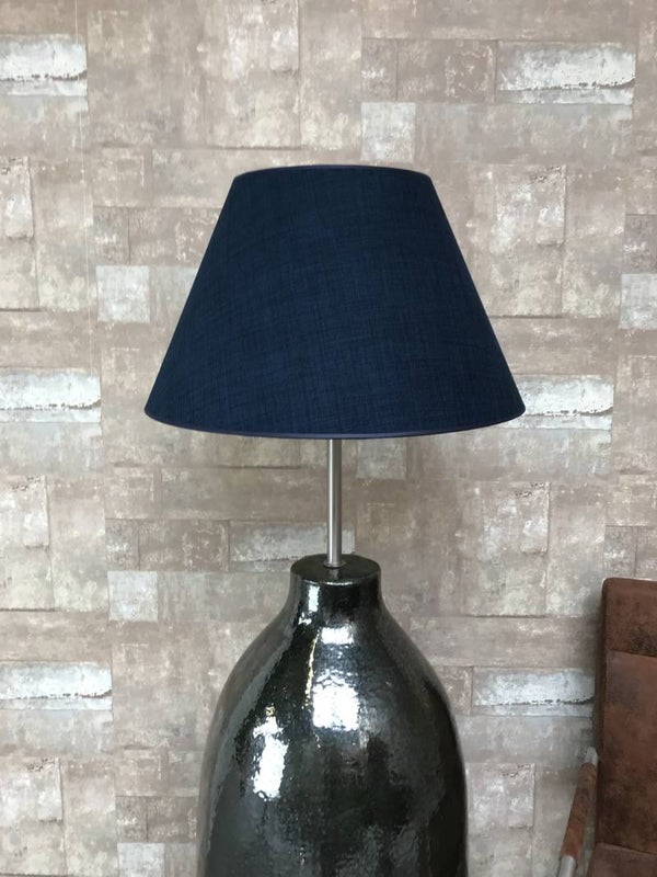 V021423 Vloerlamp aardewerk donker groen glazuur met donker blauw linnen kap.