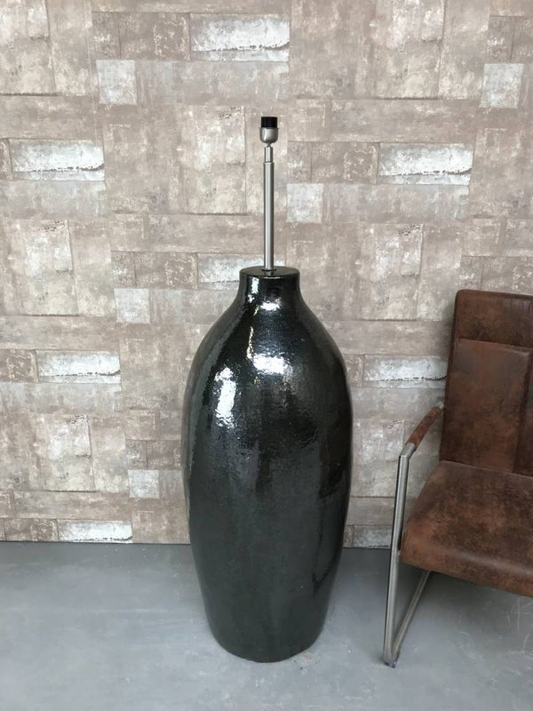 V021438 Vloerlamp aardewerk donker groen glazuur met antraciet linnen kap.