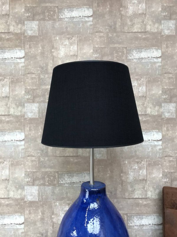 V021232 Vloerlamp aardewerk blauw glazuur met zwarte linnen kap.