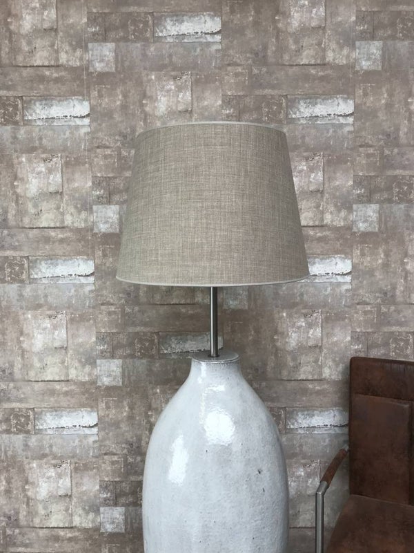 V020734 Vloerlamp aardewerk ocean oxide met licht bruine linnen kap.