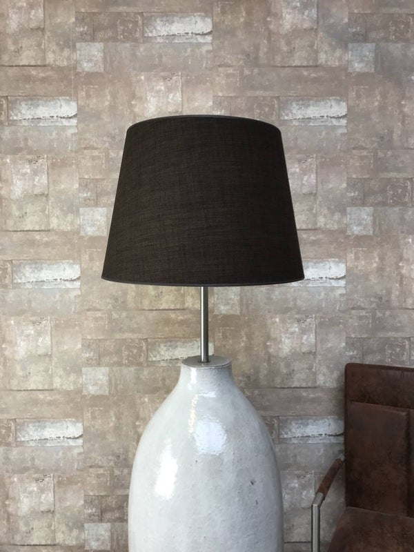 V020736 Vloerlamp aardewerk grijs glazuur met donker bruine linnen kap.
